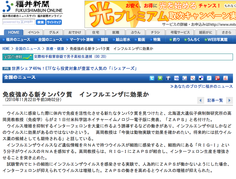 Taniguchi, T., and Takaoka, A.Type I interferon system and IRF family of transcription factors in host defense regulation.Proc. Jpn. Acad., 81, 1-13, 2005.